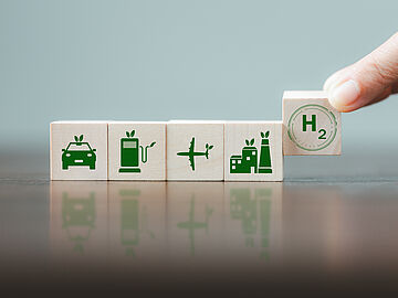 Seine besondere Eigenschaft, Energie langfristig ohne Verluste zu speichern und bei Bedarf emissionsfrei wieder nutzbar zu machen, macht grünen Wasserstoff zu einem unverzichtbaren Baustein für eine klimafreundliche Zukunft.