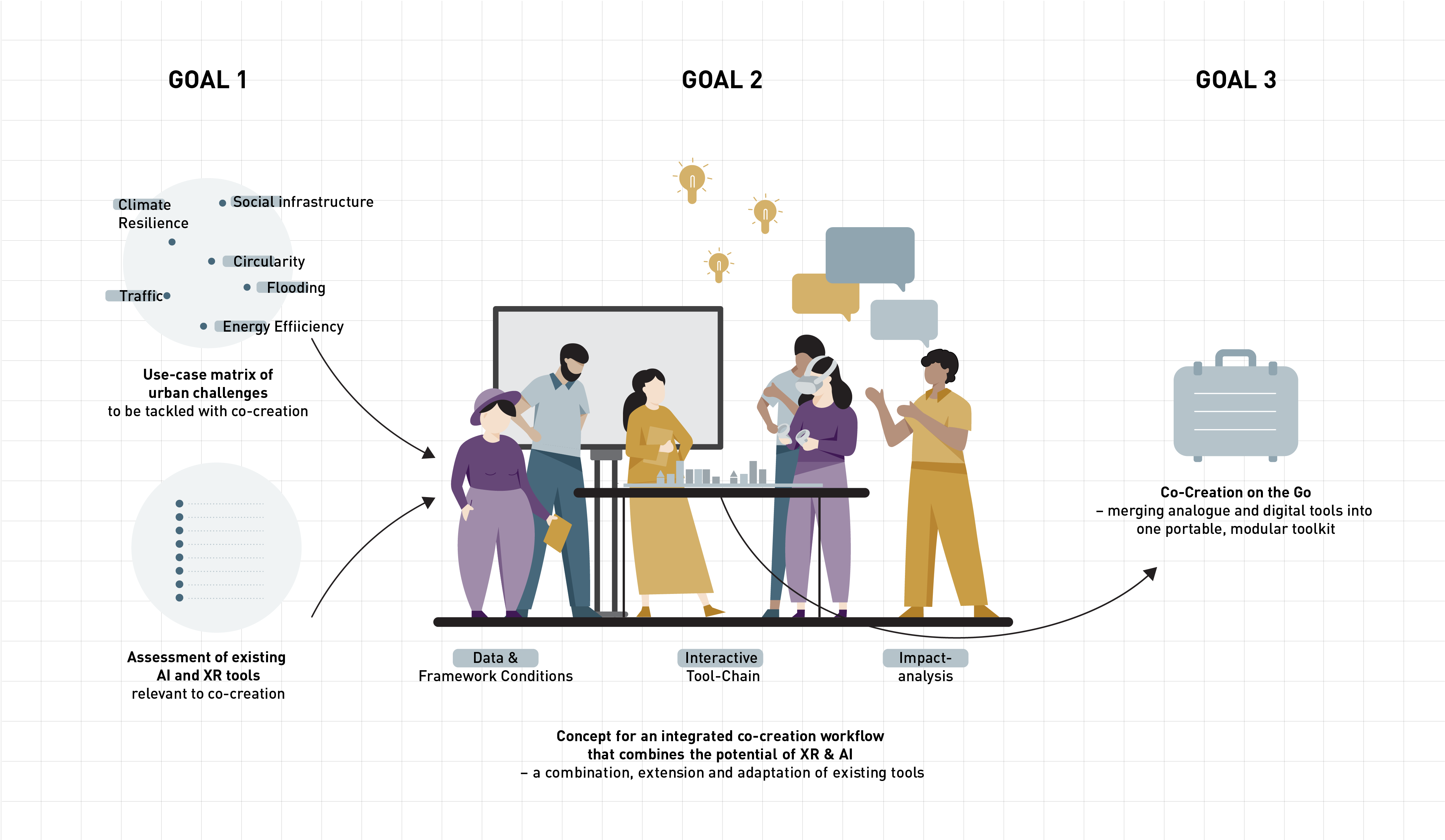 Cities are facing complex challenges — from climate change and energy efficiency to social inclusion and mobility. As urban systems evolve, so does the urban planning process, which must integrate diverse expertise, regulatory requirements and stakeholder perspectives. This growing complexity makes early-stage collaboration critical for effective decision-making. Existing processes might benefit from new technologies like AI and XR but often struggle to fully integrate them in their workflows.