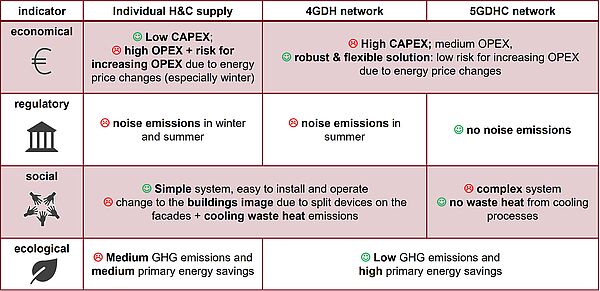 - the integration of sensitivity analyses using Monte Carlo simulations in order to systematically capture uncertainties in the planning context, including- the identification of relevant parameters influencing the system performance and economic efficiency of heating and cooling solutions