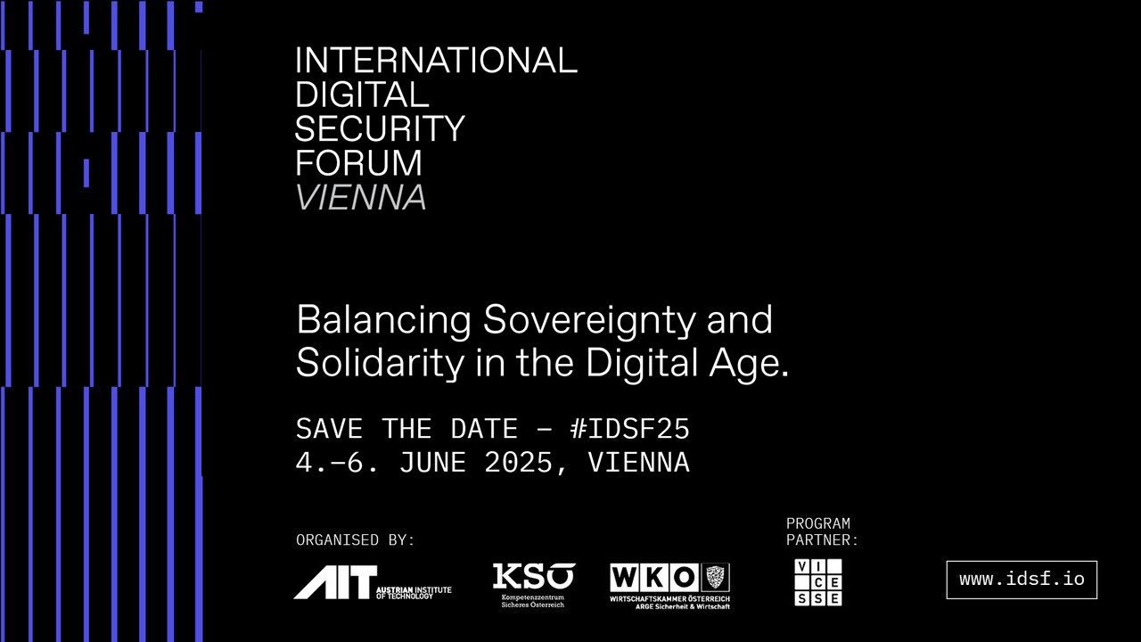 Wien (AIT) – Mit dem 4. International Digital Security Forum (IDSF) 2025 ist Wien von 4. bis 6. Juni erneut das Zentrum des globalen Diskurses über digitale Sicherheit, technologische Souveränität und internationale Cyber-Resilienz. Unter dem Motto „Balancing Sovereignty and Solidarity in the Digital Age“ lädt das IDSF25 eine internationale Multi-Stakeholder-Community führender Expert:innen aus Diplomatie, Politik, Wirtschaft und Wissenschaft ins MuseumsQuartier, um aktuelle Herausforderungen und Chancen der digitalen Transformation sowie Lösungen für eine sichere, resiliente und nachhaltige Gestaltung des digitalen Zeitalters zu diskutieren. Die Konferenz findet im kulturellen Hotspot MuseumsQuartier Wien statt. Sie wird vom AIT mit Unterstützung des Bundesministeriums für europäische und internationale Angelegenheiten, weiterer wichtiger österreichischer Ministerien und in Zusammenarbeit mit der ARGE Sicherheit und Wirtschaft der Wirtschaftskammer Österreich, dem Kompetenzzentrum Sicheres Österreich (KSÖ) und der Agency for Economic Cooperation and Development (AED) sowie in Kooperation mit internationalen Partnerorganisationen organisiert.