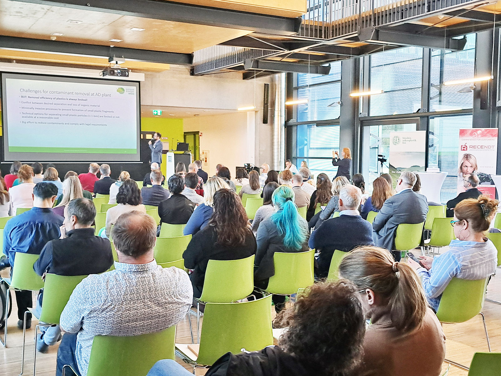 In der Keynote umriss Christian Lott (HYDRA Marine Sciences) Quellen, Regulierungen und Lösungsansätze zu Mikroplastik in landwirtschaftlichen Böden. Beiträge von Ildikó Heim (FiBL Austria), Amila Abeynayaka (TU Dänemark) und Ferran Martí Ferrer (Aimplas) reichten von Umfragen unter Landwirten, über ein farmbasiertes Entscheidungs-Tool bis zu Erfahrungen mit biologisch abbaubaren Mulchfolien. Die zweite Session, mit Melanie Brait & Florian Brunner (Kompost- & Biogas-Verband), Julia Möller (WUR) und Gabriel Gerner (ZHAW), analysierte Mikroplastik in organischen Abfallströmen, Kompostierprozessen und regulatorische Aspekte biologisch abbaubarer Kunststoffe.