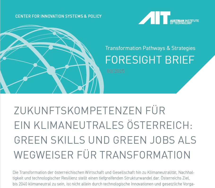 Green Skills und Green Jobs stehen dabei im Zentrum einer umfassenden Transformation von Wirtschaft, Gesellschaft und Bildung. Der Foresight Brief „Zukunftskompetenzen für ein klimaneutrales Österreich: Green Skills und Green Jobs als Wegweiser für Transformation“ identifiziert zentrale Herausforderungen und formuliert strategische Empfehlungen.
