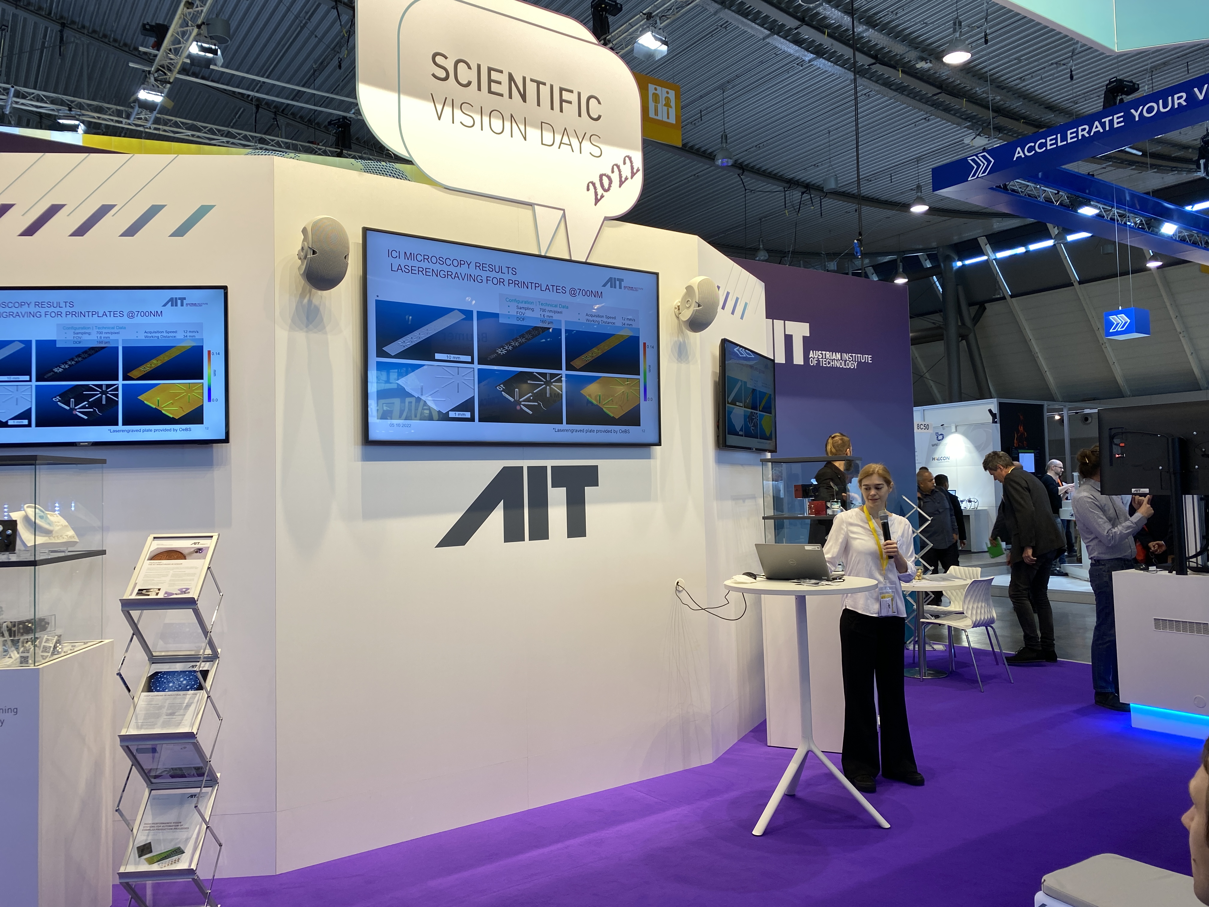 Auf dem Messestand des AIT Austrian Institute of Technology präsentierten die Expert:innen hoch performante Bildverarbeitungsmethoden für herausfordernde Inspektionsaufgaben und gaben mit der etablierten AIT Vortragsreihe, den Scientific Vision Days, der Forschung eine besondere Bühne.