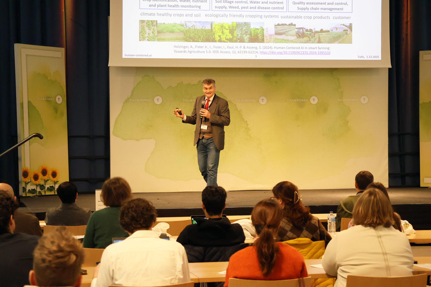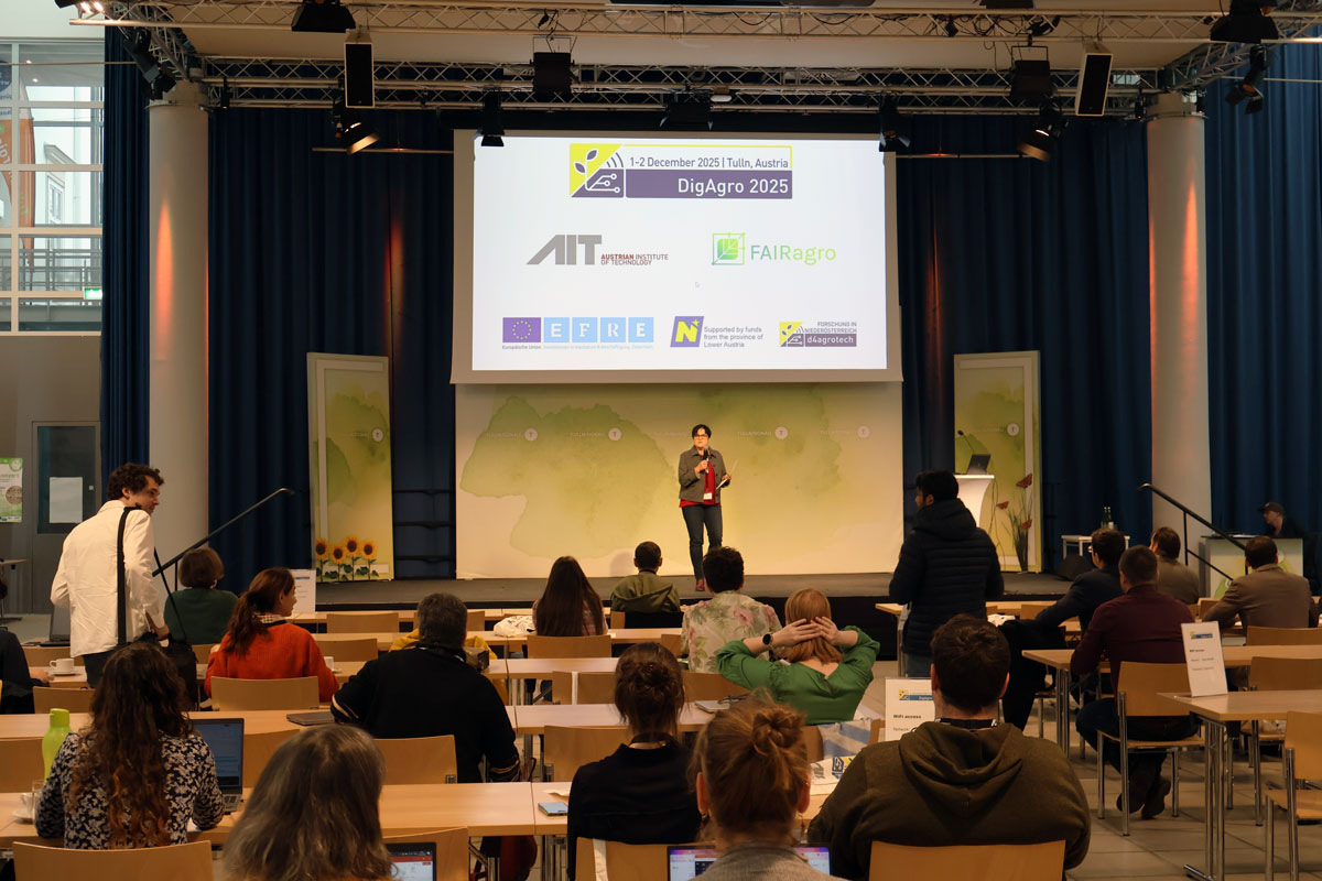 Am 1. und 2. Dezember 2025 fand im historischen Minoritenkloster in Tulln an der Donau die Konferenz DigAgro 2025 – Digitalization in Agroecology and Crop Production statt. Rund 70 Fachleute aus Forschung, Technologieentwicklung und landwirtschaftlicher Praxis diskutierten, wie Digitalisierung Agroökosysteme, Pflanzenproduktion und Mikrobiomforschung unterstützt – von Smart-Farming-Anwendungen über digitale Pflanzenphänotypisierung bis hin zu datengetriebenen Modellen für agrarökologische Systeme. Organisiert wurde DigAgro 2025 von der AIT Bioresouces Unit im Rahmen der niederösterreichischen Forschungs- und Innovationsinitiative d4agrotech. Neben 22 Vorträgen und 23 Posterpräsentationen waren interaktive und praxisorientierte Formate wie eine Podiumsdiskussion zu „Promises and challenges for digitalization in agriculture“ sowie ein Workshop des Konsortiums FAIRagro zu FAIRen Forschungsdaten und digitalen Datenmanagementsystemen für die Agrarforschung wichtige Programmpunkte.